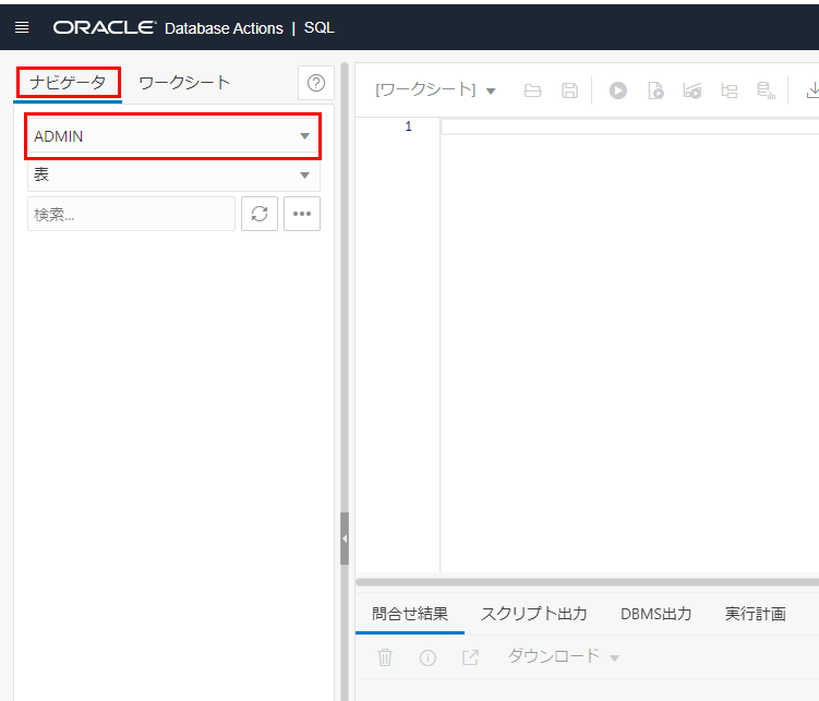 画面左にあるナビゲーターでソースPDBで作成したサンプル・データが格納されているスキーマがあることを確認し、選択します。