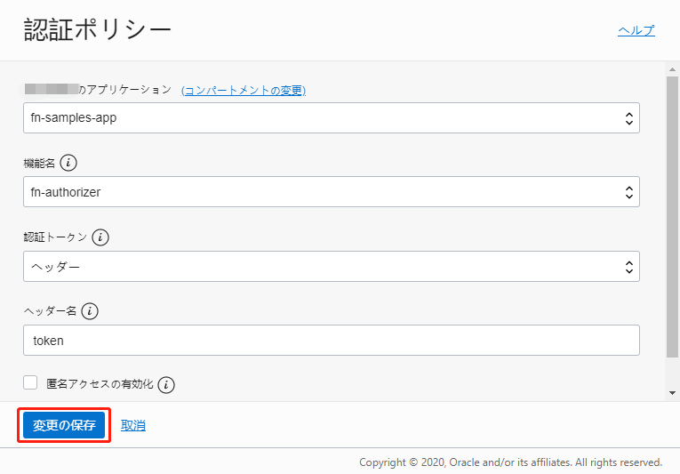 fn-samples-app - 機能名:Authorizer Functionが属する機能の名前。今回は、