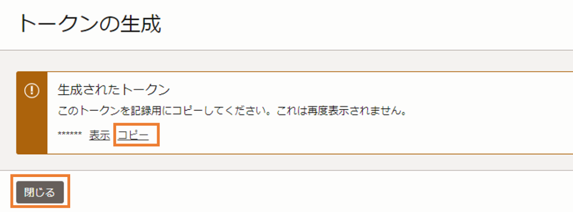 トークンが生成されたら、メモ帳等にコピーして控えておきます。