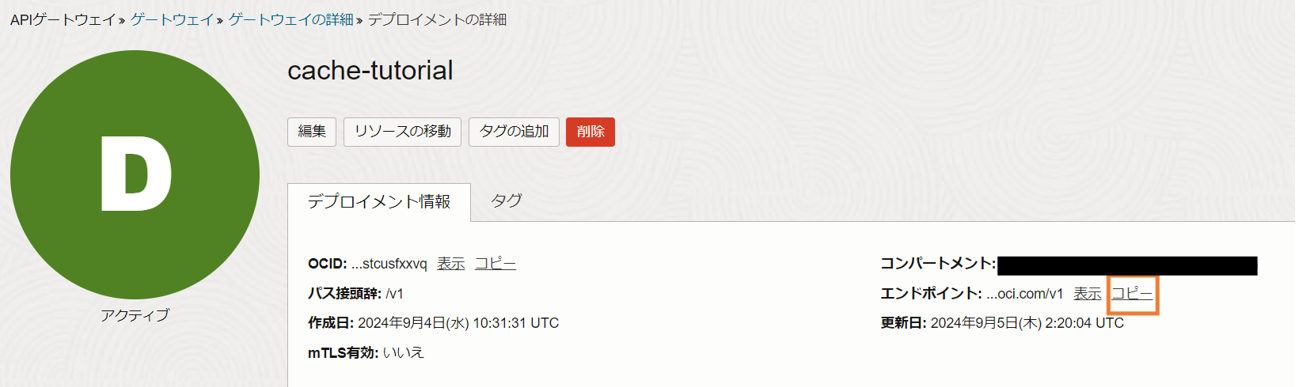 以上でOCI Cacheの作成は完了です。