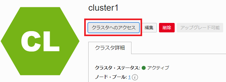 黄色の「作成中」から緑の「アクティブ」になることを確認します。「アクティブ」であればクラスタ作成は完了です。