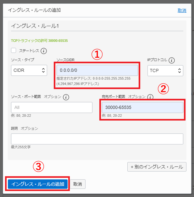 | 一致ルール - ルール1 | instance.compartment.id = '<ご自身のコンパートメントOCID>' |