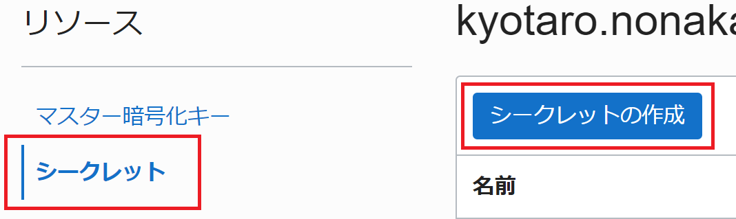 「シークレット」をクリックし、「シークレットの作成」をクリックします。