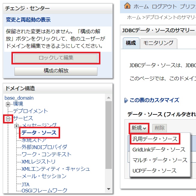 - WebLogicにデータベースの設定を行います