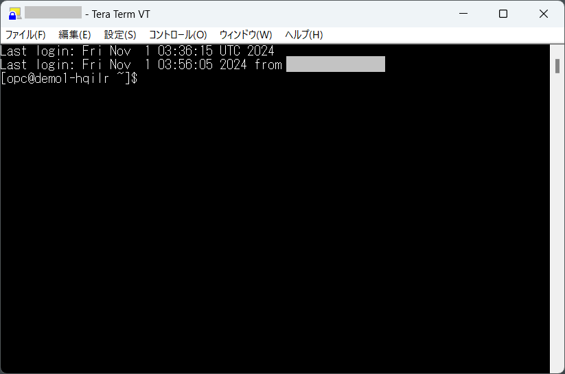 [opc@demo1-hqilr ~]$ sudo su - oracle Last login: Fri Nov 1 04:06:00 UTC 2024 [oracle@demo1-hqilr ~]$ログアウトせず、そのまま次に進んでください。