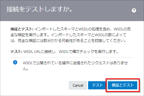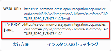 | エンドポイントURL | www.oracle.com ※ここで設定したエンドポイントURLは、ダミーのURLです。 後の手順で、OIC で作成した統合のエンドポイントURLに書き換えます。 |