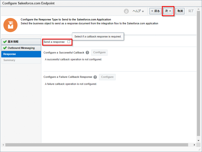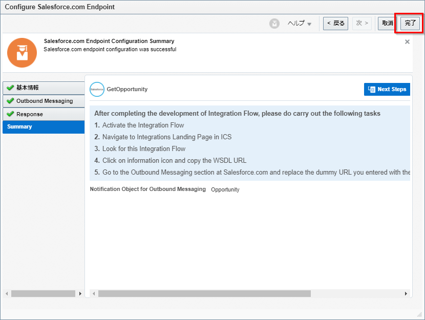 SFDC からのアウトバウンドメッセージを受信するように、SFDC接続を構成します。