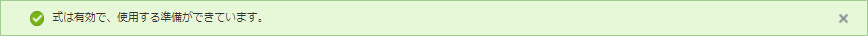 「検証」 をクリックします。 「式は有効で、利用する準備ができています。」 が表示されます。