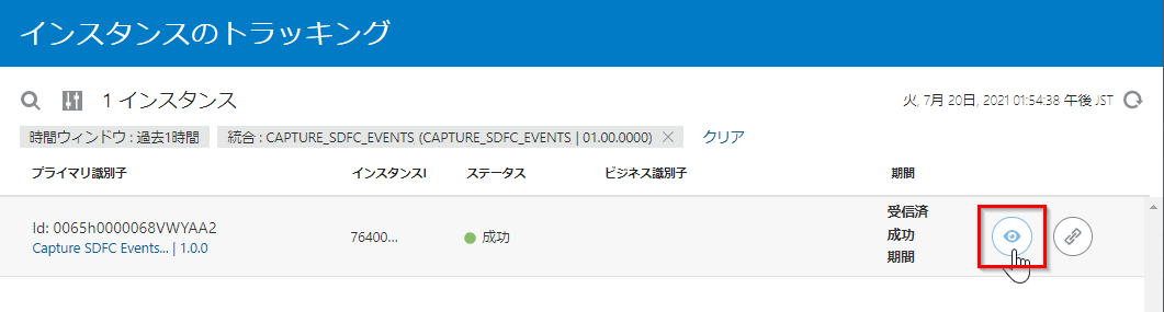 Capture SFDC Events の 「実行」→「インスタンスのトラッキング」 をクリックします。