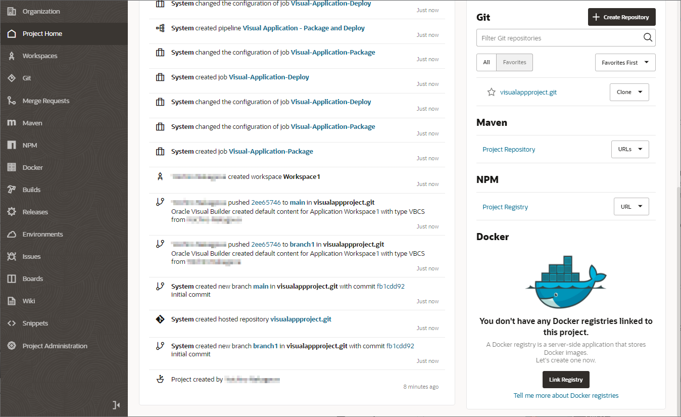 以下のように画面が表示されれば、Visual Builder Studioのセットアップが完了です。