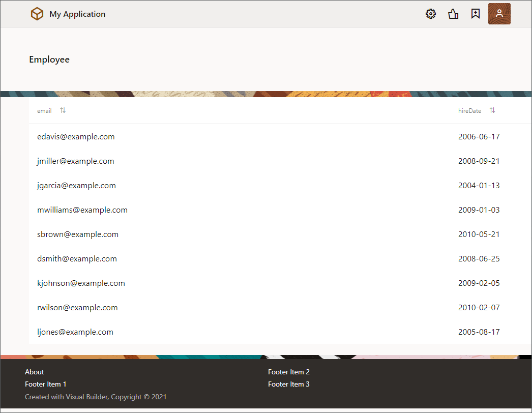 VBCSのコンソール画面へ遷移し、“Page Designer"から画面の任意の場所を編集します。今回はタイトルを"Employees"から"Employees List"へ変更します。