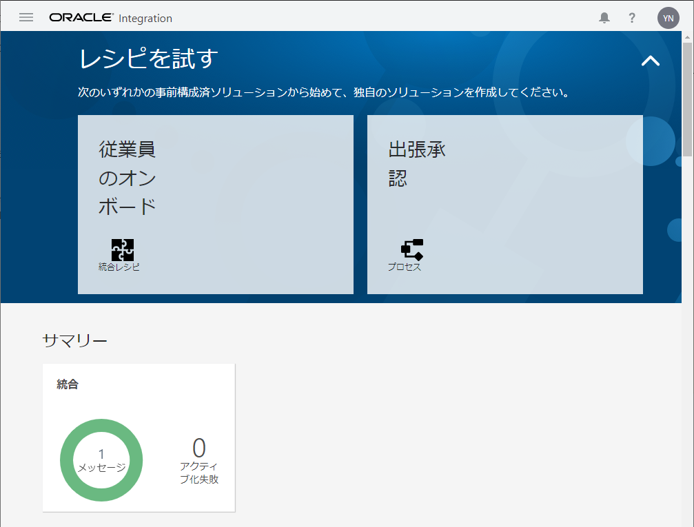 Webブラウザを開き、提供されたOICインスタンスのURLを入力します。もしくはOCIのコンソールから「開発者サービス」-「アプリケーション統合」から作成済みのOICインスタンスを選択し、「サービス・コンソール」からOICコンソールを開きます。
